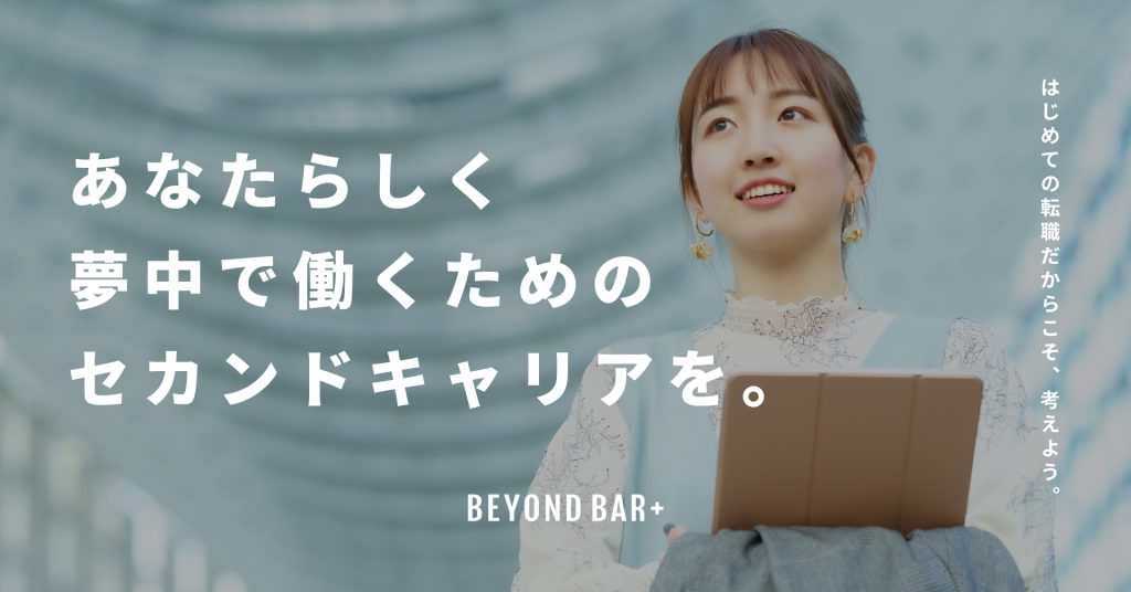 はじめての転職だからこそ、考えよう。あなたらしく、夢中で働くためのセカンドキャリアを。 はじめて転職する20代のための転職エージェント『BEYOND BAR+(ビヨンドバープラス)』が誕